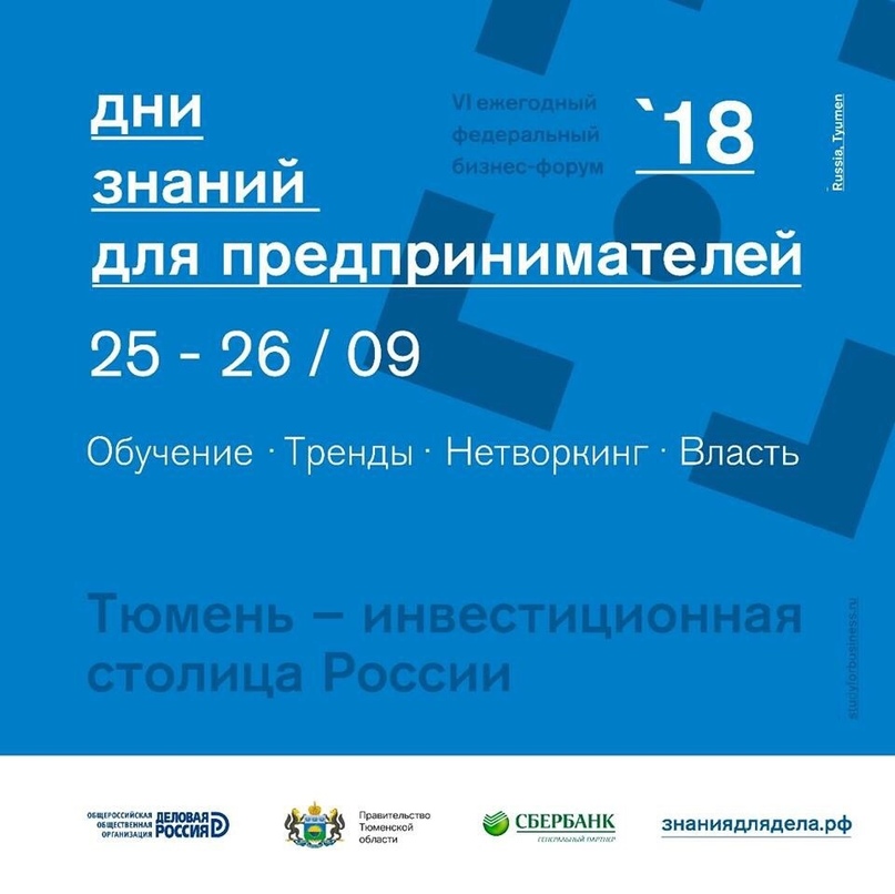 Это уникальная образовательная и коммуникативная платформа. Ежегодно на форум приезжают не только предприниматели, но и представители власти. Форум позволит узнать об особенностях взаимодействия с органами власти, о способах масштабирования бизнеса за пределами Тюменского региона и выхода на федеральный рынок и многое другое. Участие бесплатное, но приветствуется благотворительный взнос. Подробности, программа мероприятий и регистрация на сайте.